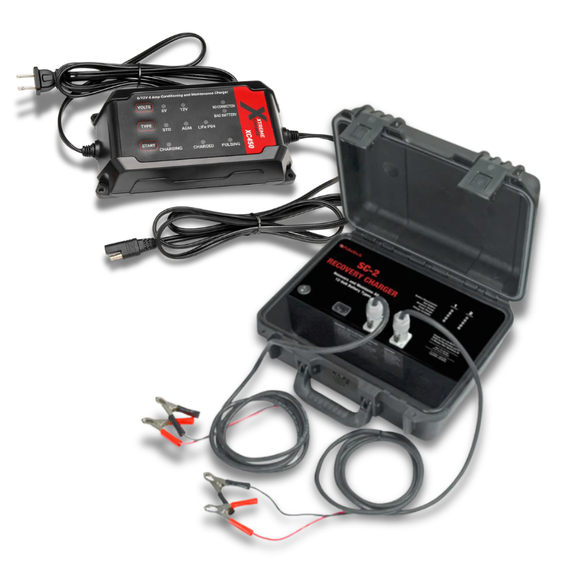 Test, charge, and maintain up to four 12V lead-acid batteries at once! Includes the XC400 The World’s Greatest Battery Charger, 12V Voltmeter, and 4 leads.