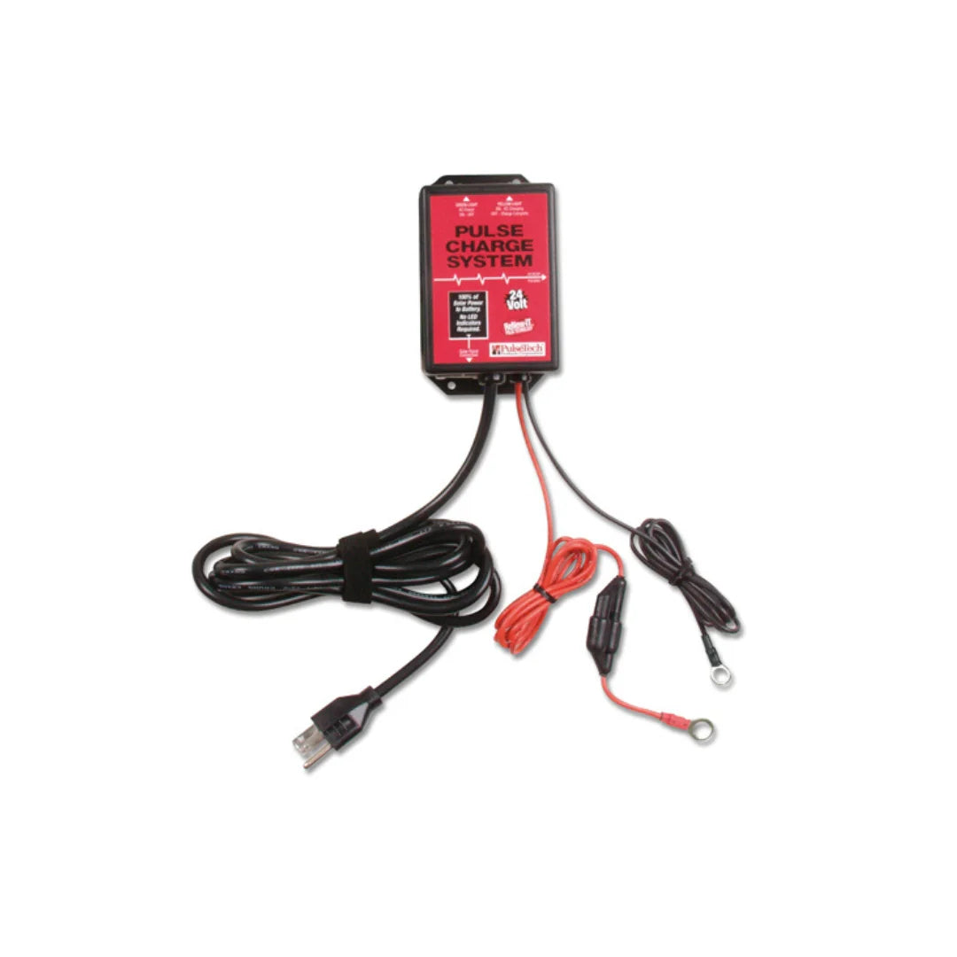 The PCS 24-Volt Charger Maintainer Pulse System 735x667 is ideal for maintaining 24-Volt lead-acid batteries stored indoors on a long-term basis. Colored lights indicate AC charge status and battery conditioning. The PCS prevents unused batteries from losing their charge and removes lead sulfate crystals that build up on battery plates. This 24V Battery Charger & Maintainer has the capacity to maintain six 12-Volt batteries in twenty-four volt sets. Power supply is reverse polarity protected and the battery cannot be overcharged.