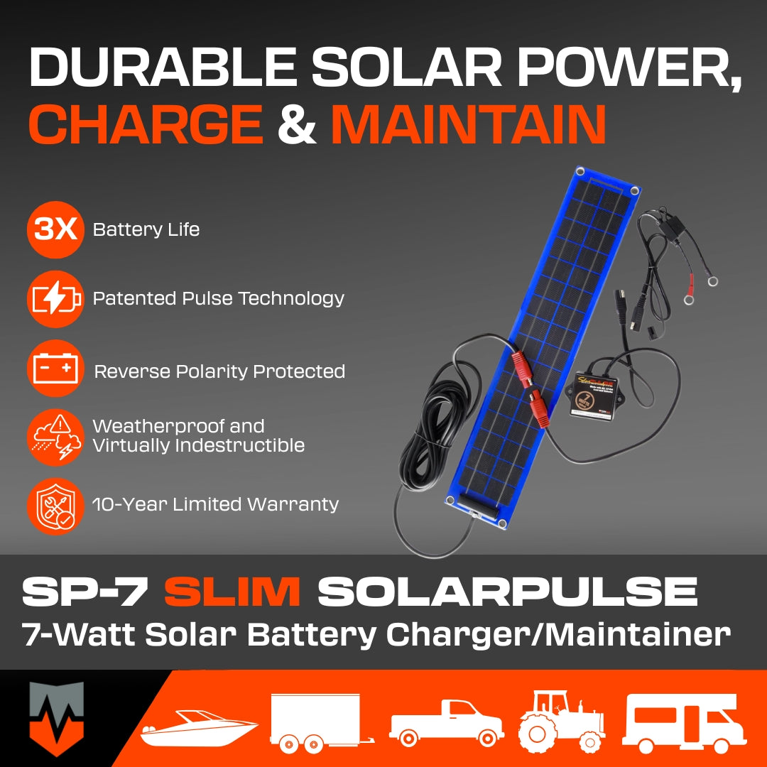 SolarPulse® SP-7 Slim 7-Watt Solar Battery Charger & Maintainer
