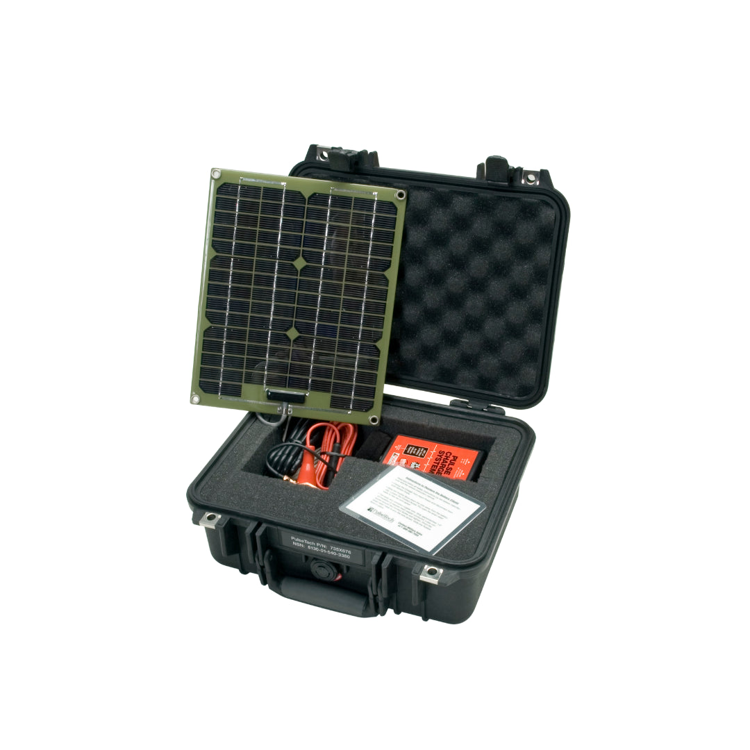 The 24-Volt Pulse Charge System 735x676 in a durable carrying case is ideal for maintenance of 24-Volt lead-acid batteries in vehicles in long term storage whether indoors or outside. This PCS is ideal for indoor or under cover stored vehicles and if you use the 6.3-Watt solar panel, it provides battery maintenance if your vehicle is on the road or parked outside. Unit has the capacity to charge up to six 6-Volt batteries with groups of two batteries in series and the groups connected in parallel.
